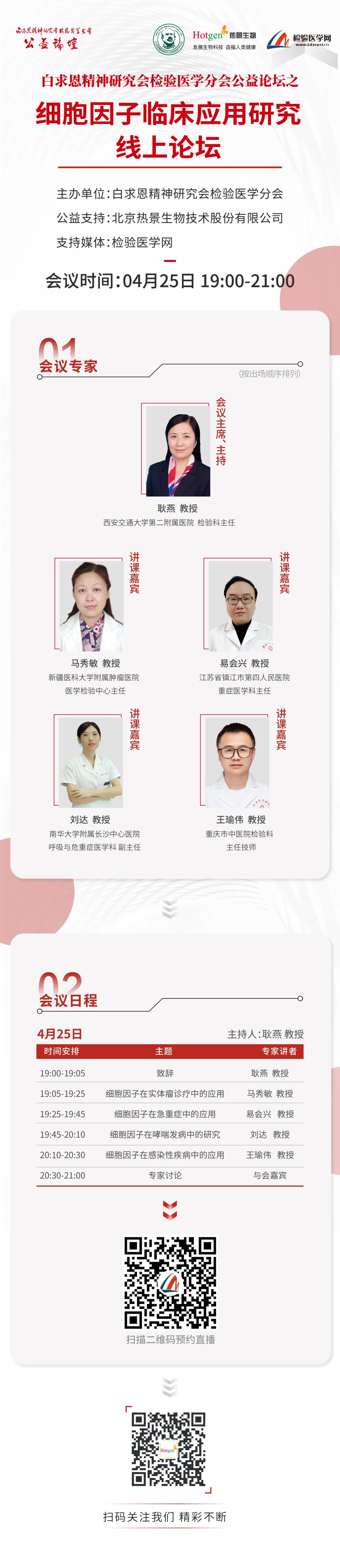 直播预告 | 白求恩精神研究会检验医学分会公益论坛之“细胞因子临床应用研究线上论坛”