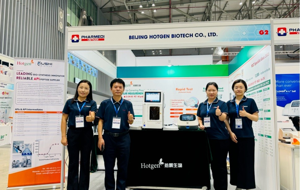 Beijing Hotgen Biotech Co., Ltd. (Hotgen) successfully participated in the 2024 Pharmed & Healthcare Vietnam Exhibition during September 11-14th, 2024. This is the debut of Hotgen’s products in Vietnam exhibition. During this event at the Saigon Exhibition and Convention Center (SECC) in Ho Chi Minh City, Hotgen presented its highly regarded mono-test chemiluminescence (CLIA) and Up-Converting Phosphor Technology (UPT) immunoassay solutions, along with its breakthrough small-molecule diagnostic technology and a range of colloidal gold rapid test products. These innovative diagnostic products attracted numerous attendees and received high praise from industry experts. During the exhibition, we engaged in in-depth discussions with local professionals, exploring the potentials of innovative in-vitro diagnostic (IVD) technologies in enhancing diagnostic capabilities in Vietnam and across the South-East Asian region. Pharmed & Healthcare Vietnam 2024 provides a valuable opportunity for Hotgen to connect with the diagnostic industry in the region. We look forward to furthering collaborations with partners to advance healthcare solutions, for a healthier Vietnam, for a healthier world.