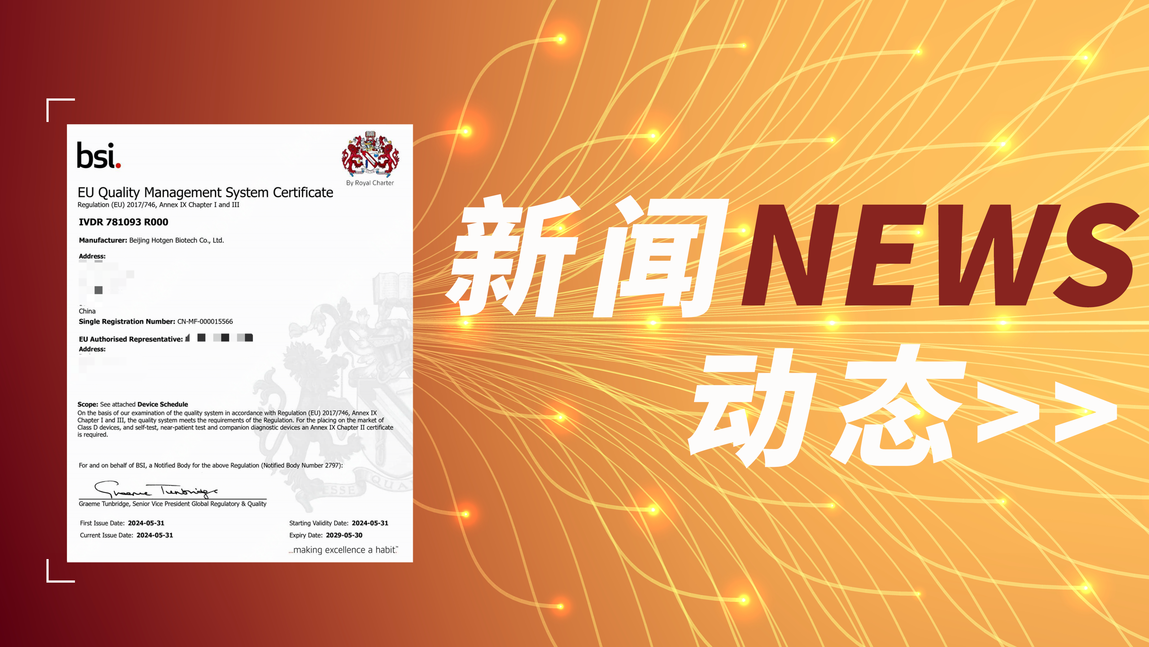 近日,热景生物成功获得了欧盟体外诊断医疗器械法规(IVDR)下的CE认证,跻身国内少数率先获得该标准认证的IVD厂商之列。这也是国内单人份化学发光类产品获得的首张CEIVDR证书,由欧洲最有声望的认证...