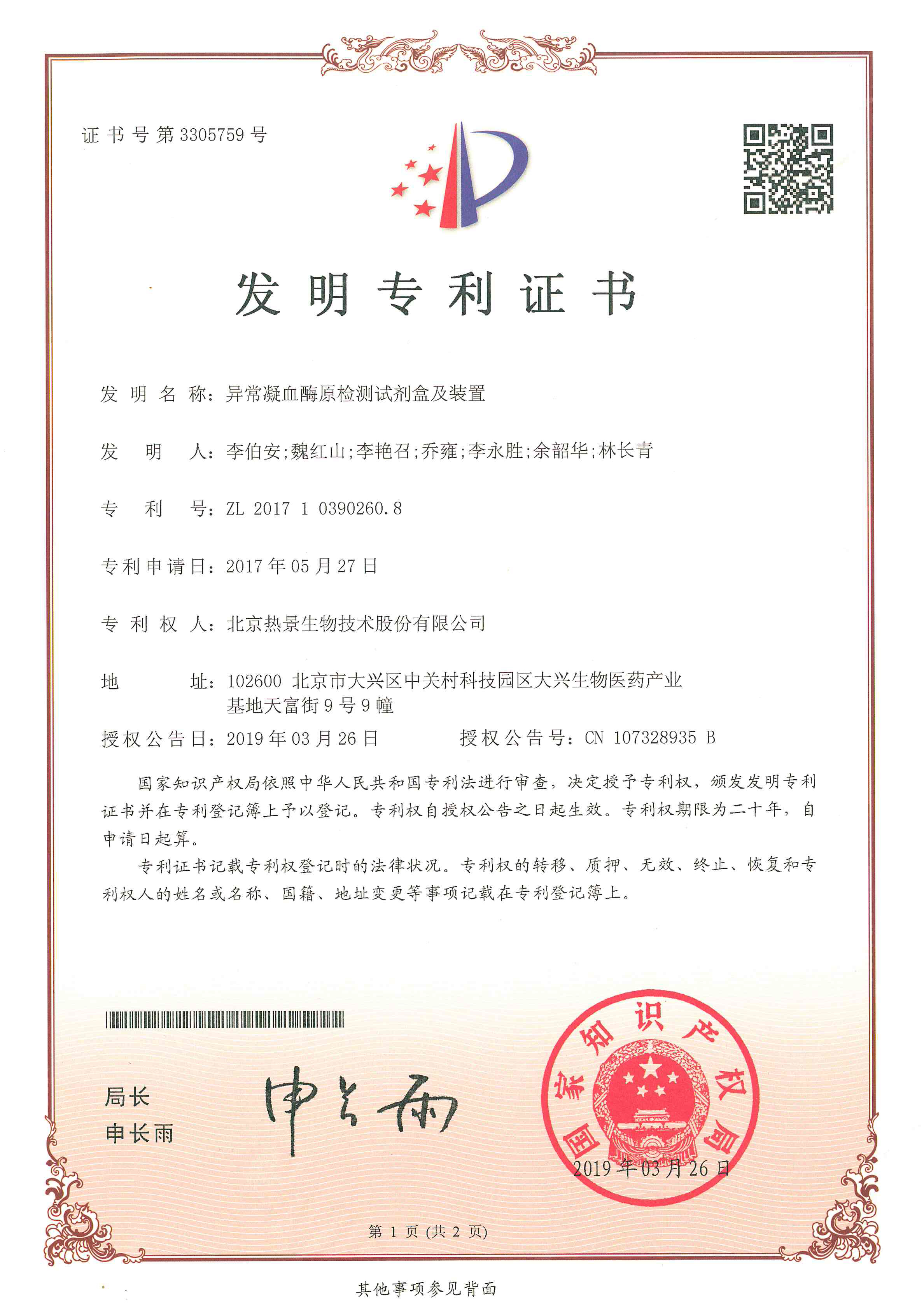 发明专利证书
